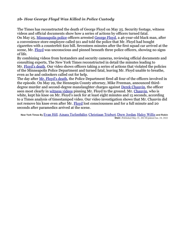 2B How George Floyd Was Killed During Custody, New York Times, May 31 2020