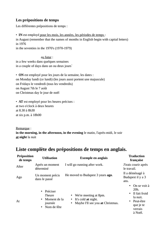 PréPosition De Temps
