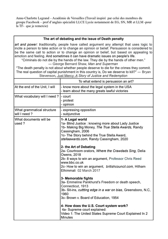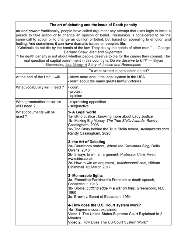 Déroulé Des Activités ( The Art Of Debating And The Issue Of Dealth Penalty