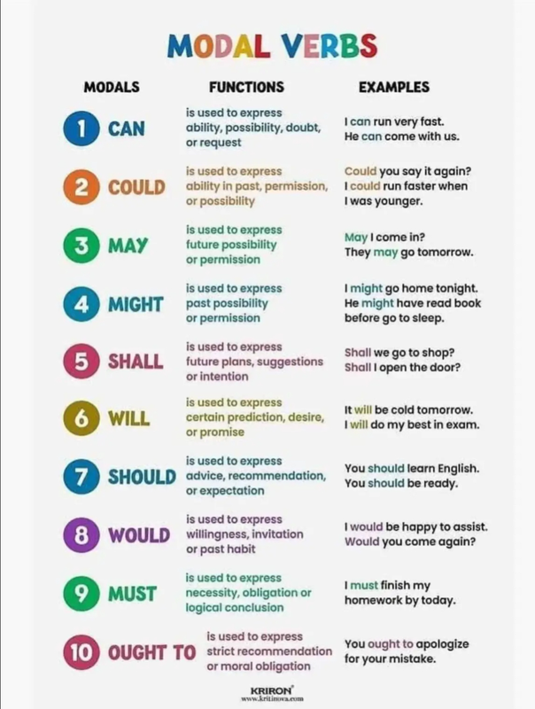 Modals, Modal Verbs, Types of Modal Verbs: Useful List & Examples | English Grammar