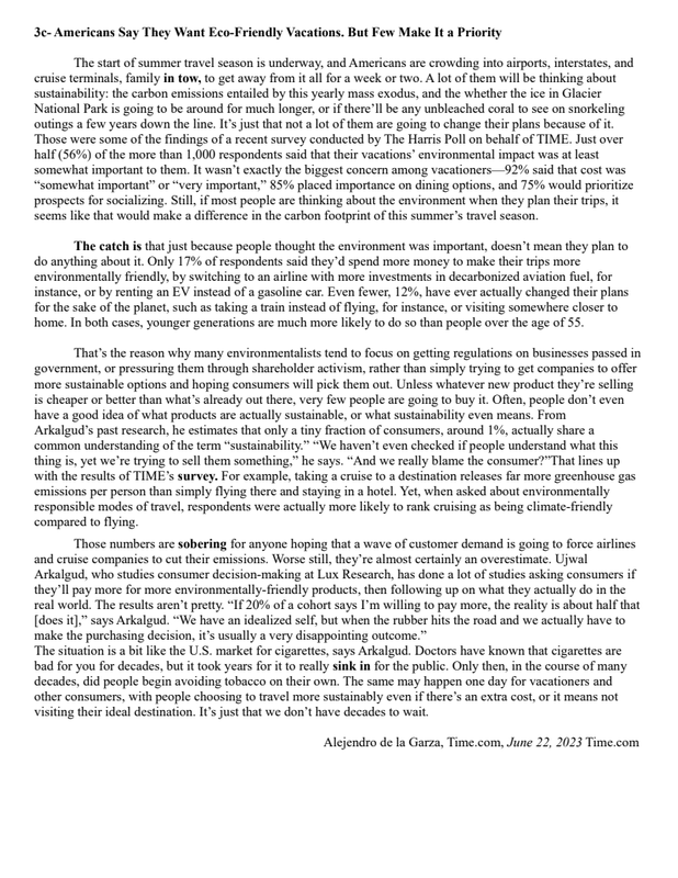 3C Americans Say They Want Eco Friendly Vacations. But Few Make It A Priority (Text)