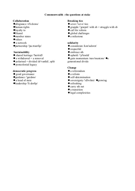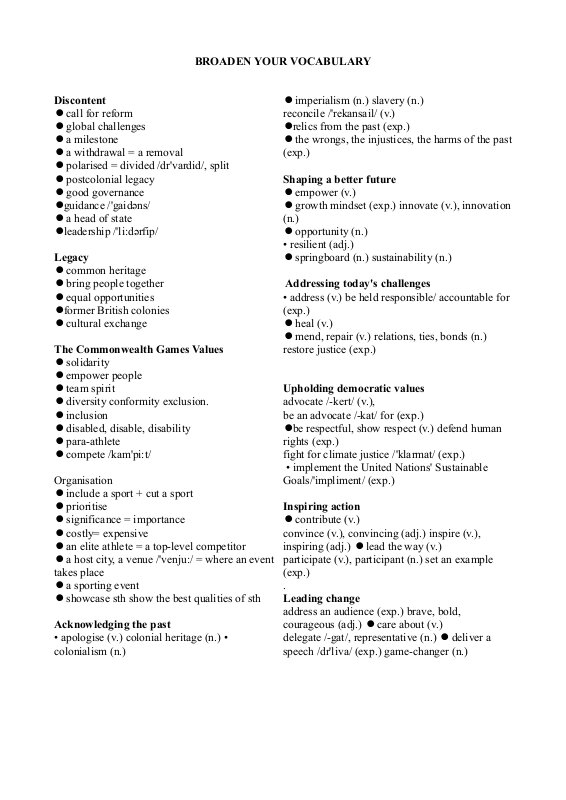 Broaden Your Vocabulary Commonwealth Values And Challenges
