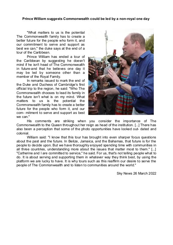 Prince William Suggests Commonwealth Could Be Led By A Non Royal One Day Sky News 26 March 2022