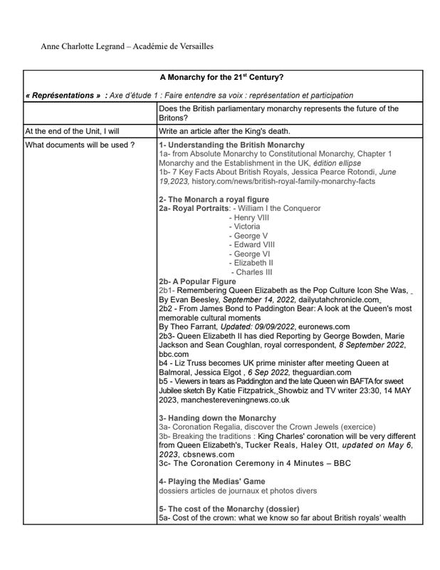 Déroulé Des Activités A Monarchy For The 21 St Amc