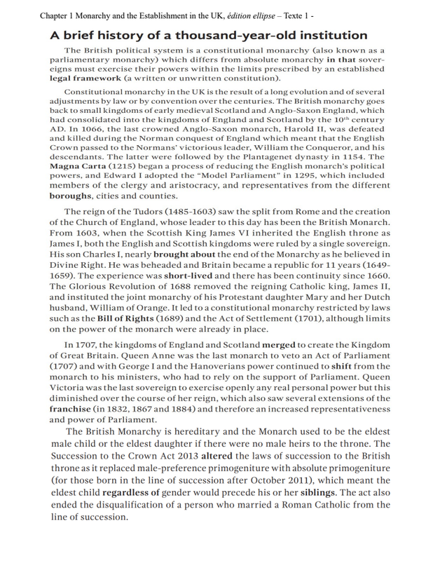 Document 1a- Chapter 1 Monarchy And The Establishment In The Uk, Édition Ellipse
