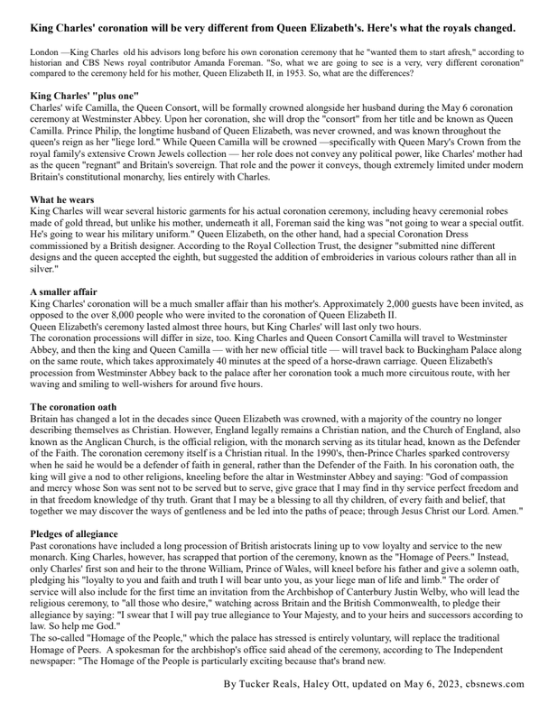 3b (annexe) - King Charles' coronation will be very different from Queen Elizabeth's. Here's what the royals changed.
