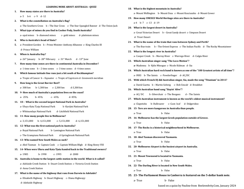 1b-Australia Quizz To Be Printed