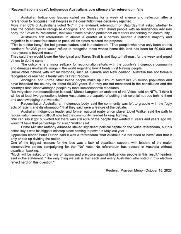 2f Reconciliation Is Dead Indigenous Australians Vow Silence After Referedum Fails