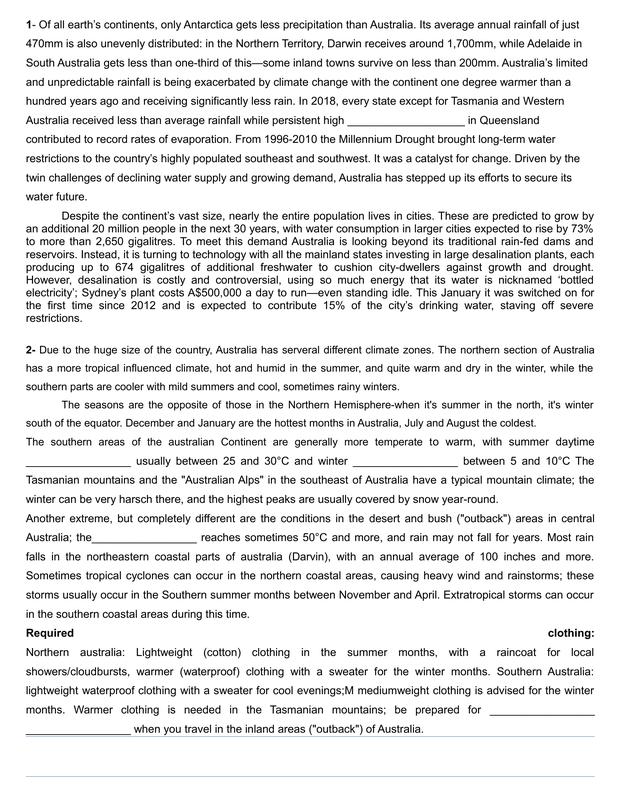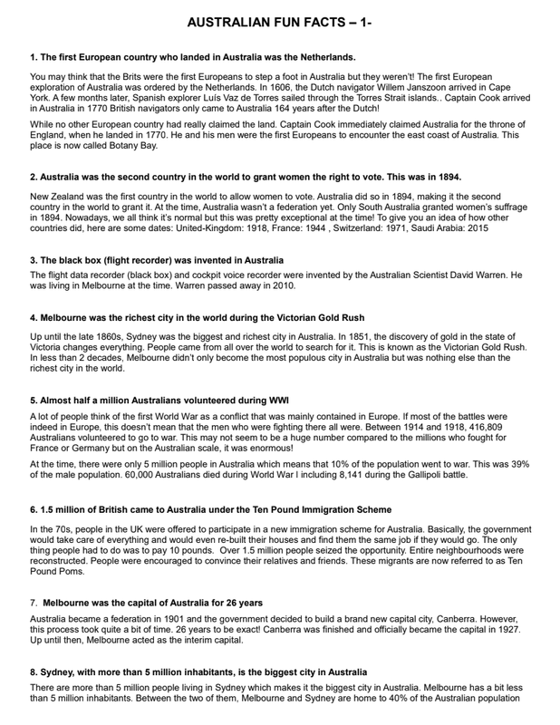 Australian Fun Facts Pour Photocopie