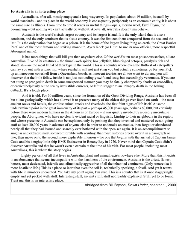 1c- Australia Is An Interesting Place, Byll Bryson, Down Under 2000