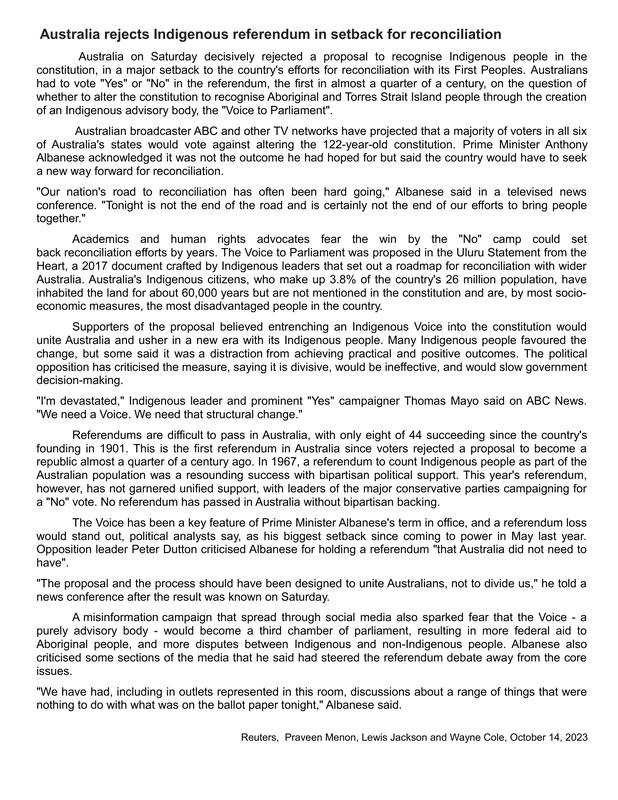 2e- Australia Rejects Indigenous Referendum In Setback For Reconciliation