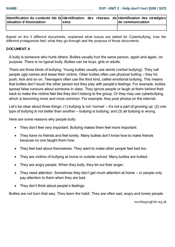 How to deal with Cyber Bullying - - vocabulary (sparks 2nd)