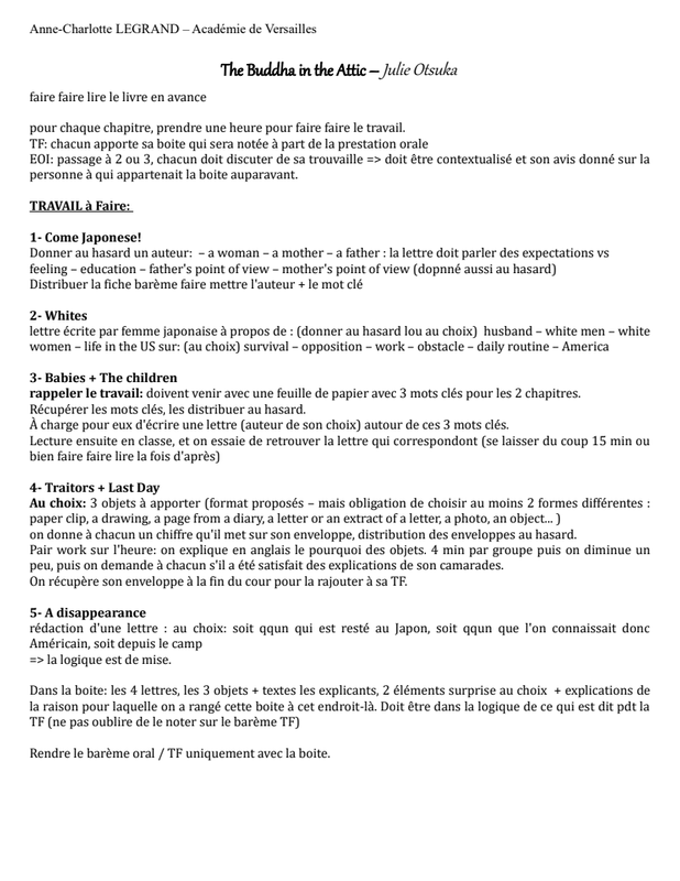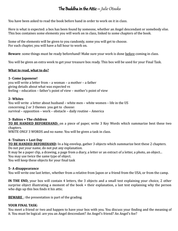 Descriptif Projet Lecture Suivie The Buddha In The Attic