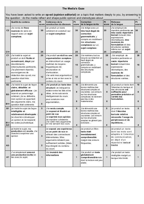 Barème The Media'S Gaze
