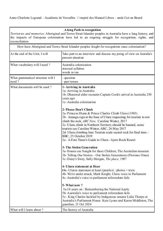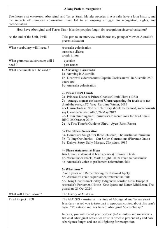 Déroulé Des Activités A Long Path To Recognition Term Territoire Et Mémoire