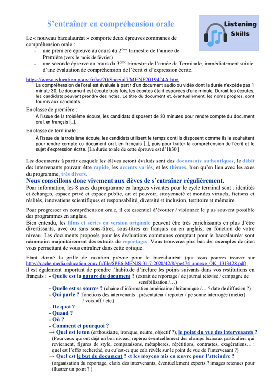 S'Entraîner En Compréhension Orale Conseils Par Anne Muller, Lycée Alain